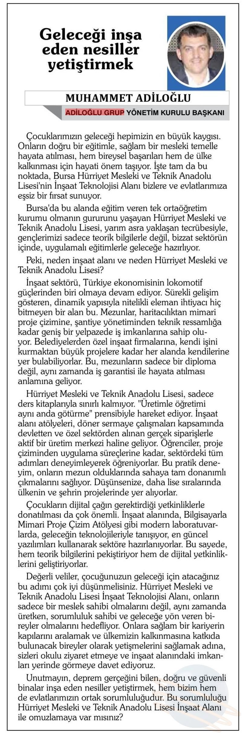 Adiloğlu Grup olarak, şehrimizin ve ülkemizin ekonomik gelişimine katkı sağlayan her çalışmada aktif rol almaya devam edeceğiz.